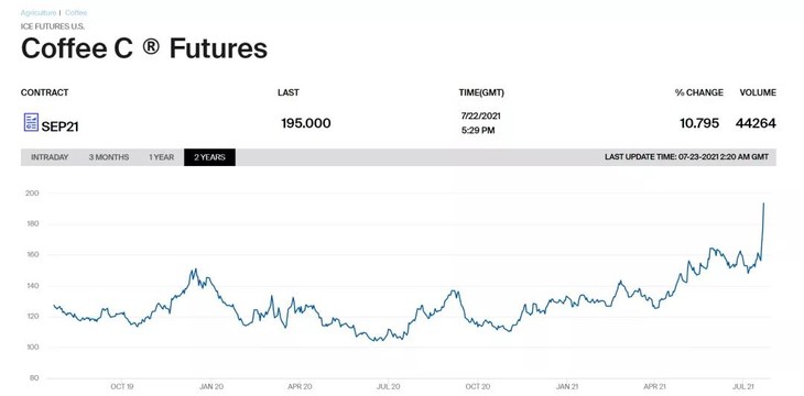 受全球氣候變化、產(chǎn)量變化、貨幣政策等多種因素影響,近年來(lái)咖啡期貨價(jià)格波動(dòng)較大,特別是在疫情期間,由于供應(yīng)鏈中斷和需求增長(zhǎng),咖啡期貨價(jià)格一度飆升。